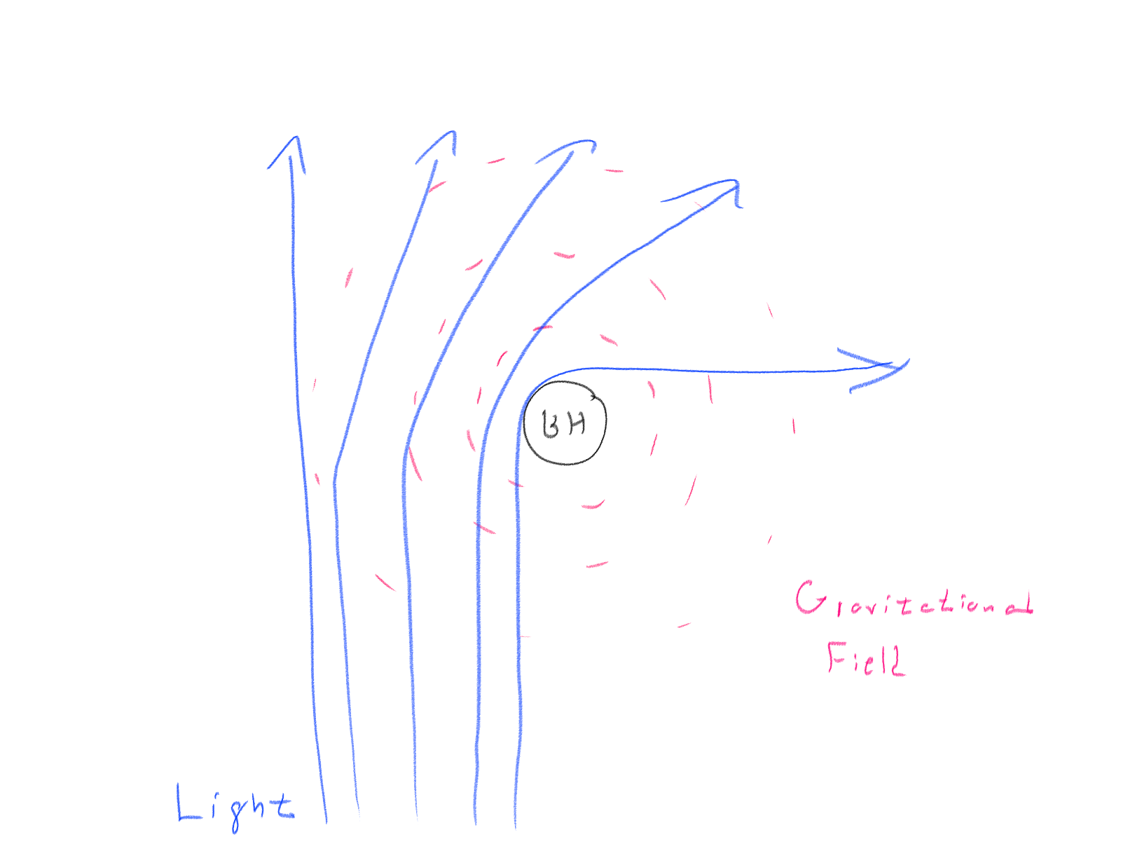 So to recreate the gravitational lensing effect, light could not curve around the hole but would need to be bent towards the final location.