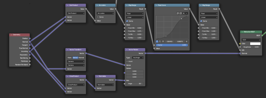 Next, a dot product on the incoming vector and initial normal is used to obtain a factor for controlling the IOR parameter.