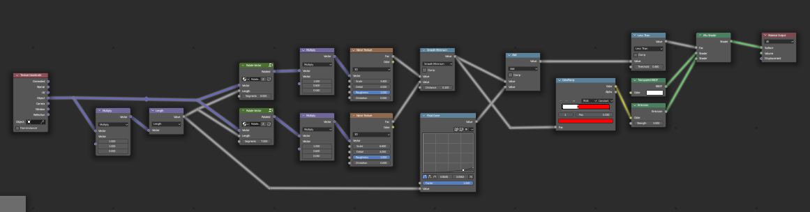 This results in a smooth taper on the edges when passed through the comparison operation deciding if a fragment is visible or not.
