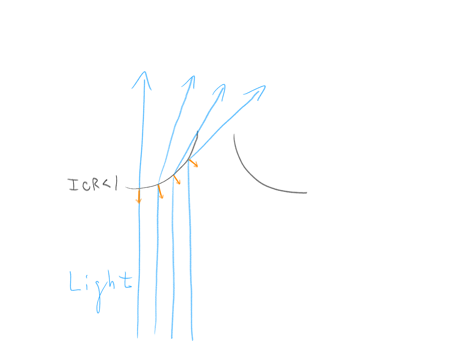 For context, when light passes through an object it refracts and is bent near/away from the normal depending on the index of refraction ratio between the mediums the light travels through.