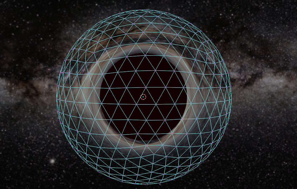 However for my approach I wanted the black hole to be realtime performant and use Blender's realtime engine 'Eevee', where light can only be bent or refracted once.